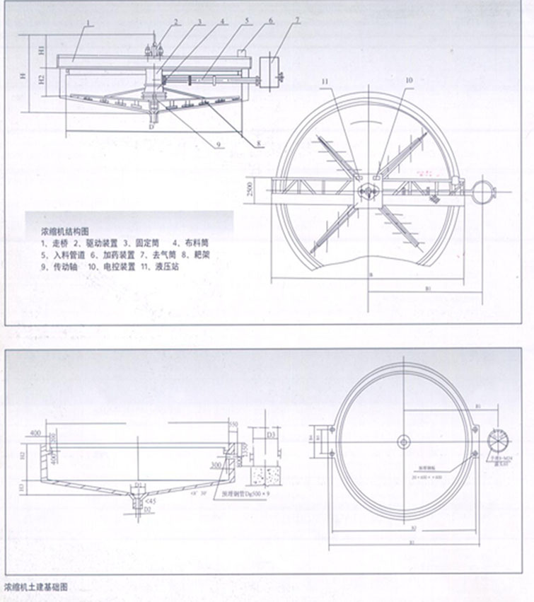 NXZ中心傳動(dòng)高效濃縮機(jī)是一種驅(qū)動(dòng)裝置設(shè)計(jì)在池體中心部位的濃縮機(jī)。直徑30米以下的設(shè)備設(shè)計(jì)有承載傳動(dòng)裝置的橋架,傳動(dòng)裝置下部連接傳動(dòng)軸,傳動(dòng)軸下部連接4個(gè)整體式耙架,并設(shè)計(jì)有消能器,能有效消除浮選工藝所產(chǎn)生的分子能量,使沉靜速度加快,結(jié)構(gòu)上能實(shí)現(xiàn)深層布料、平流沉降,處理量是老式濃縮機(jī)的3-5倍。傳動(dòng)裝置采用液壓馬達(dá)驅(qū)動(dòng)、液壓整體提耙。設(shè)備為全自動(dòng)高效濃縮機(jī),自動(dòng)提耙、自動(dòng)降耙、自動(dòng)聲光報(bào)警、自動(dòng)檢測(cè)水下阻力。設(shè)備主要特點(diǎn):結(jié)構(gòu)簡(jiǎn)單無(wú)易損件,故障率低、維修簡(jiǎn)便。30米以上的大型濃縮機(jī)則采用半橋形式,池體中心有水泥柱體,傳動(dòng)裝置支撐在水泥柱體上,不僅傳動(dòng)剛性強(qiáng)而且能有效減少鋼材使用量,為用戶節(jié)約成本。
